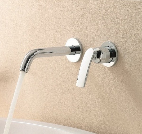 Такой смеситель крепится на вертикальную поверхность. В основном он располагается в ванной комнате, но его можно увидеть и на кухне. Использование однорычажного крана способствует экономии расходования горячей и холодной воды, а также легкой регулировке температуры. Необходимо помнить о том, что поток воды должен быть направлен в середину раковины.