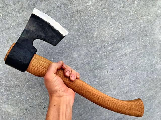 Топор. Классический инструмент для плотника. Угол заточки должен составлять примерно 20°. Металл не должен расслаиваться, иметь вкраплений и сколов. Уважающие себя производители, как правило, оставляют на лезвии свой фирменный знак.